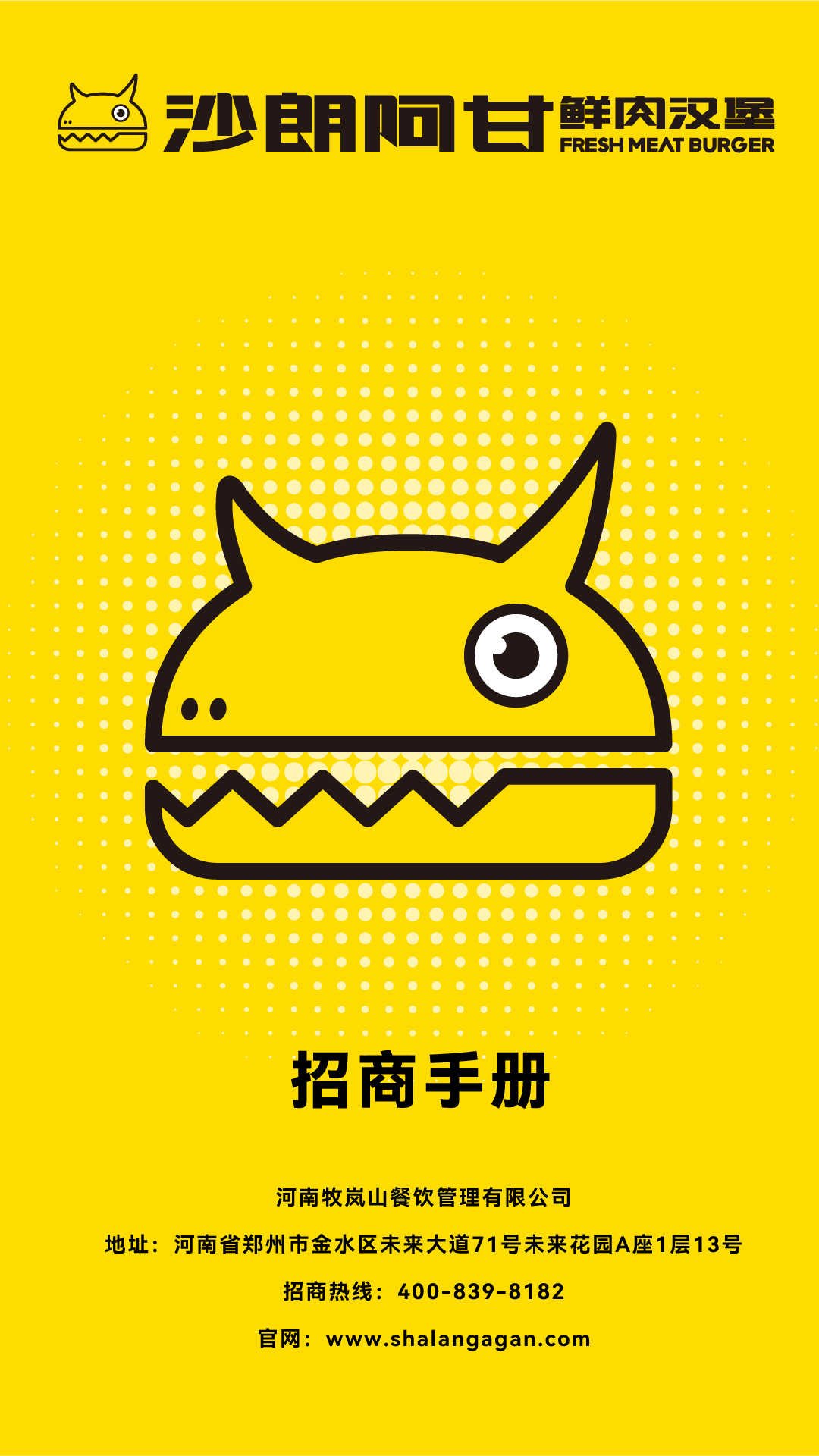 沙朗阿甘鲜肉汉堡唯一官方网站:www.shalangagan.com及唯一招商加盟热线:400-839-8182。除此之外,河南牧岚山餐饮管理有限公司未曾委托任何其他第三方快招网站、平台及公司对沙朗阿甘”品牌进行招商宣传。